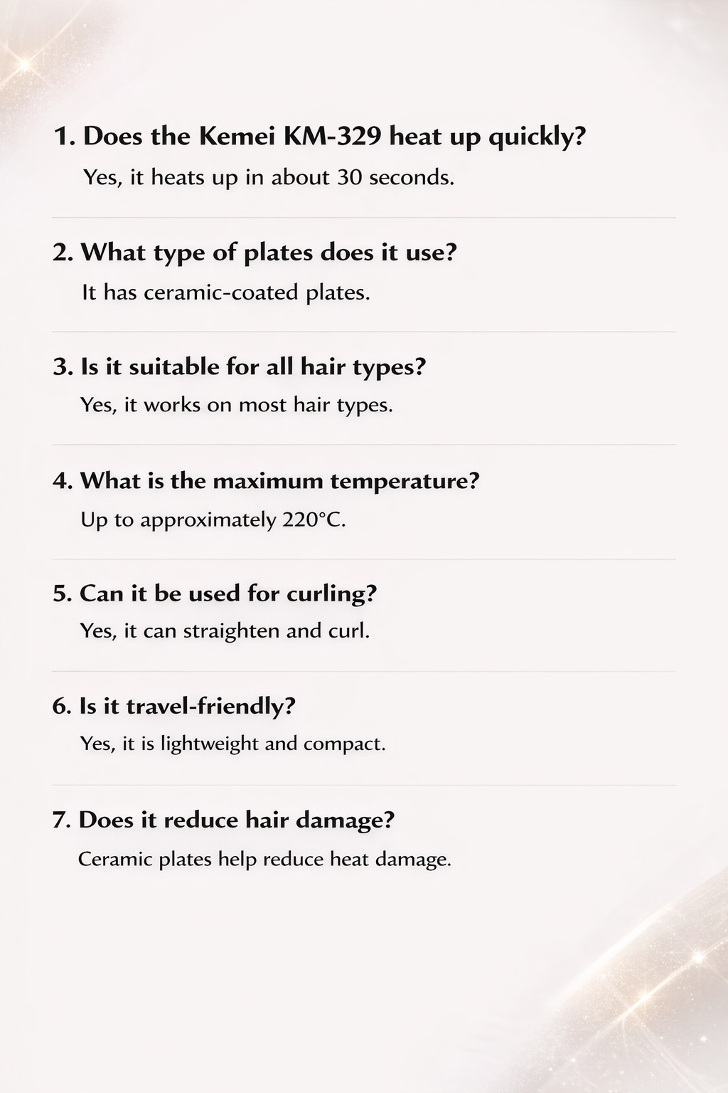 Get smooth, straight, and shiny hair with the Kemei KM-329 Hair Straightener – Ceramic Fast Heating Flat Iron for Smooth & Silky Hair from Shopping Door Pakistan.